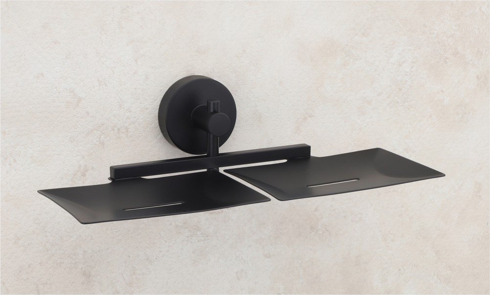 Organize your bathroom with the Vencia Double Soap Dish, elegantly designed in a sophisticated black matte finish. Ideal for stylishly storing and displaying your essential soaps.