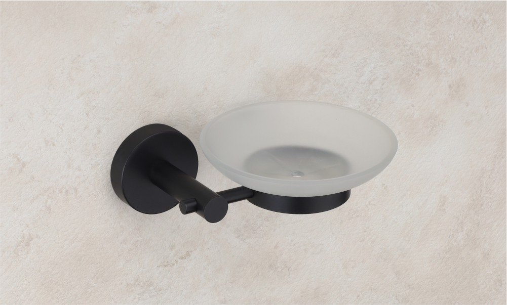 Enhance your bathroom decor with the Vencia Glass Soap Dish, crafted in a stylish black matte finish. Perfect for organizing and elevating your daily cleansing routine with contemporary flair.