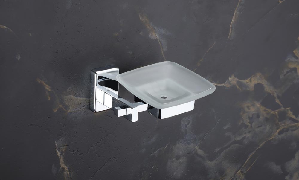 Upgrade your bathroom with the Vencia Glass Soap Dish, adorned in a chic chrome finish. A perfect blend of functionality and sophistication for your daily cleansing rituals.