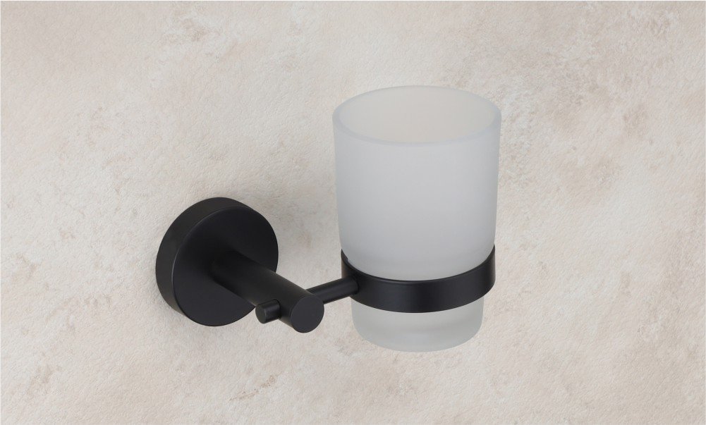 Organize your bathroom essentials with the Vencia Glass Toothbrush Holder, designed in a sleek black matte finish. Combines modern aesthetics with practical functionality for stylish storage.
