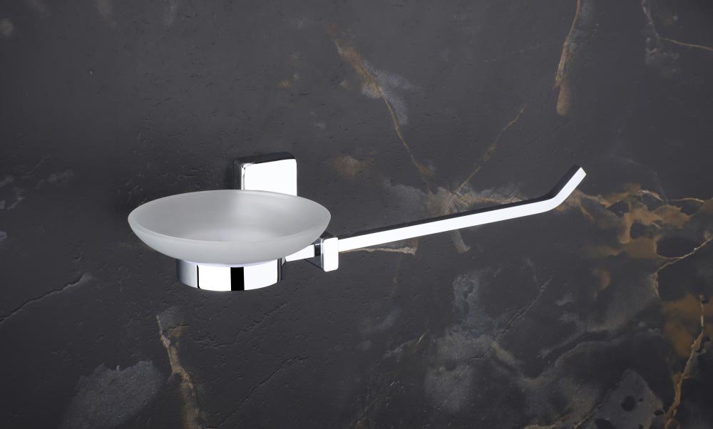 Transform your table setting with the Vencia Napkin Ring paired with a Glass Soap Dish, exuding elegance with its chrome finish. Perfect for stylish dining and impeccable hygiene.