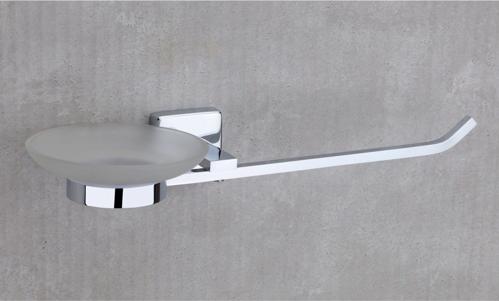 Enhance your dining ambiance with the Vencia Napkin Ring complemented by a Glass Soap Dish, finished in polished chrome. Perfect for adding elegance and functionality to your table setting.