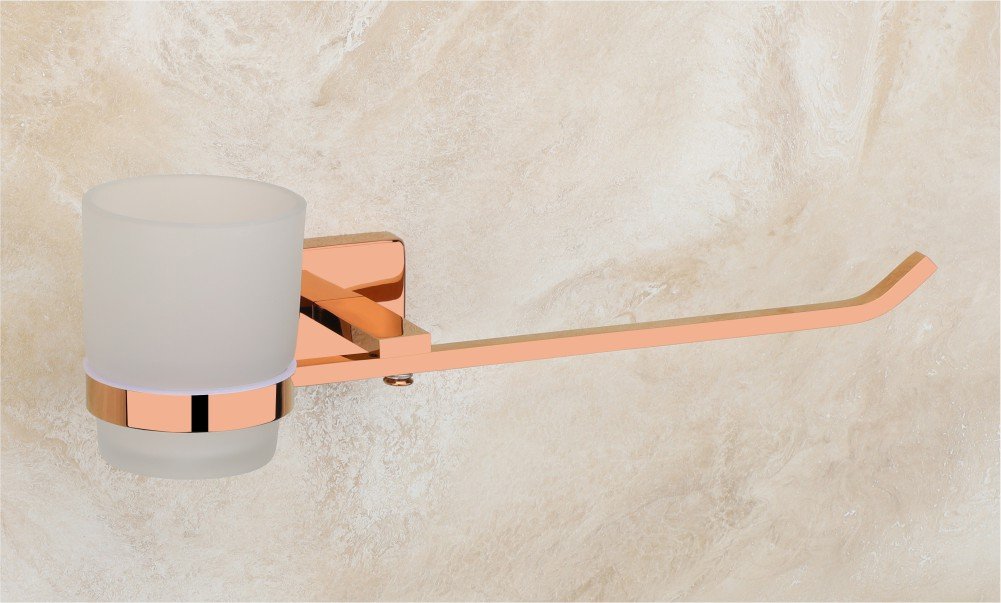 Transform your table decor with the Vencia Napkin Ring accompanied by a Glass Toothbrush Holder, radiating elegance in rose gold. Perfect for blending style and functionality seamlessly.