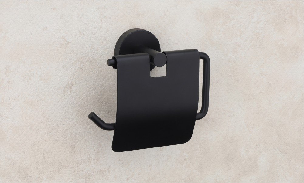 Enhance your workspace or bathroom with the Vencia Paper Holder, crafted in a sophisticated black matte finish. Combines practicality with modern style for an elegant organizational solution.