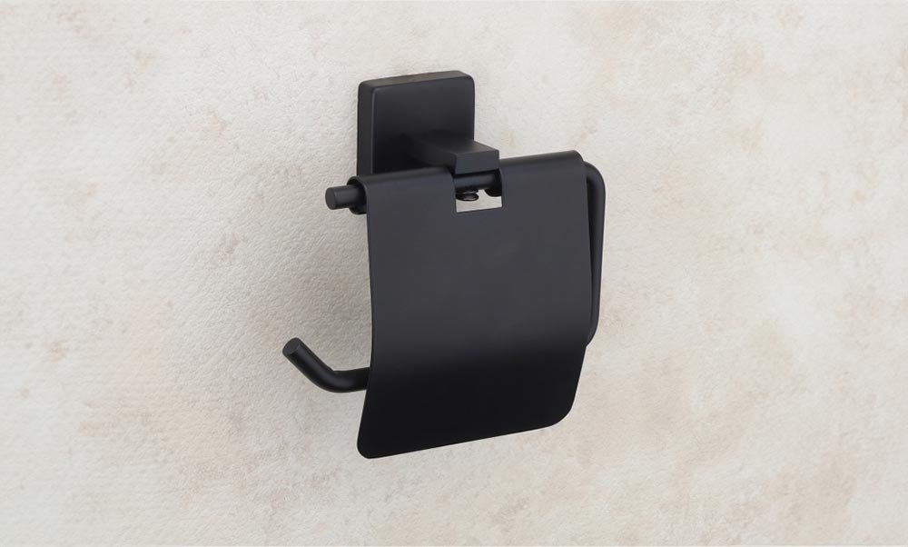 Enhance your workspace or bathroom with the Vencia Paper Holder, designed in a sleek black matte finish. Combines functionality and modern style for a sophisticated organizational solution.
