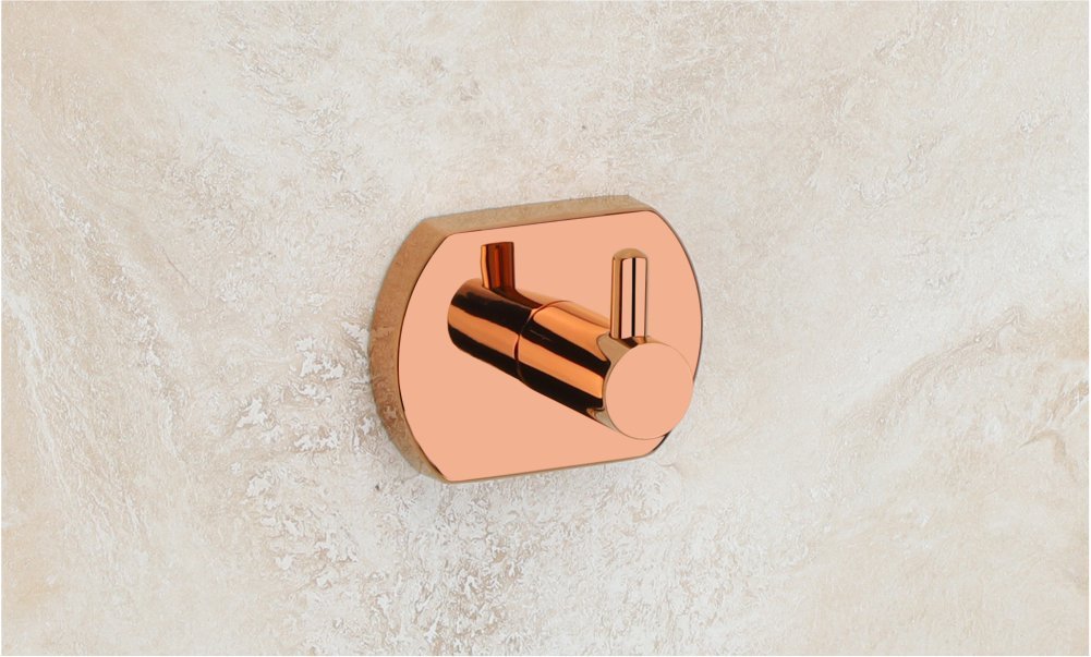 Here is a modern PVD rose gold rob hook. It is sturdy and adds a touch of elegance to any bathroom. Perfect for hanging robes or towels.