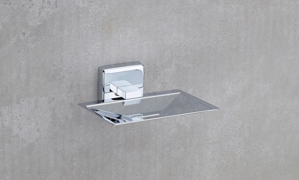 Elevate your bathroom decor with the Vencia Soap Dish, featuring a sleek chrome finish. Perfect for organizing and enhancing your daily cleansing routine with modern sophistication.