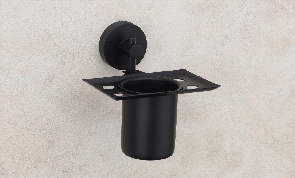 Organize your bathroom essentials with the Vencia Toothbrush Holder, elegantly crafted in a sophisticated black matte finish. Perfect for blending modern style with practical functionality.