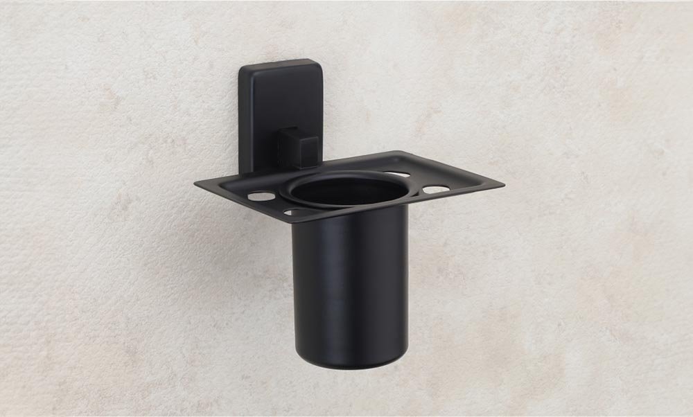 The Vencia Toothbrush Holder is crafted with a sophisticated black matte finish, seamlessly blending style and practicality in your bathroom decor.