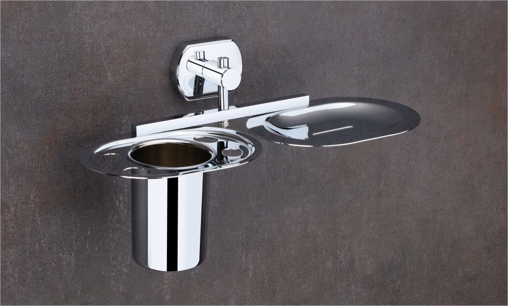 Enhance your bathroom’s style with the Vencia Toothbrush Holder featuring a gleaming chrome finish. It includes a built-in soap dish, combining functionality with a modern aesthetic seamlessly.