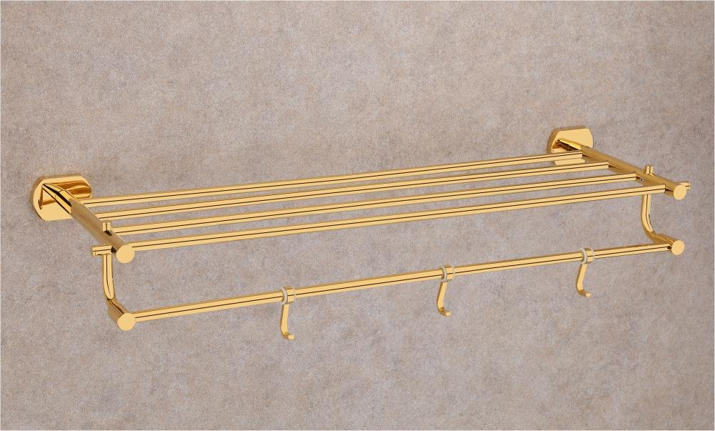 Upgrade your bathroom with Vencia’s 24-inch Towel Rack, finished in elegant PVD gold. This sturdy rack not only organizes towels neatly but also adds a touch of luxurious charm to your space.