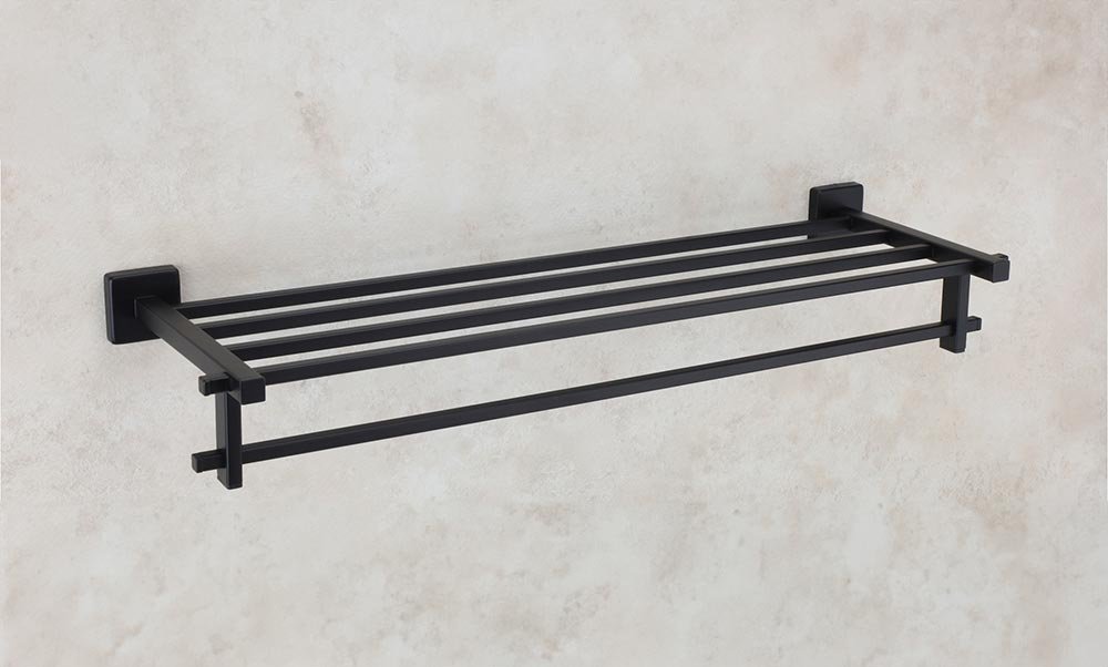 Transform your bathroom with the Vencia 24″ Towel Rack, designed in a sleek black matte finish. Combines practicality and contemporary style for stylishly organizing towels with modern sophistication.