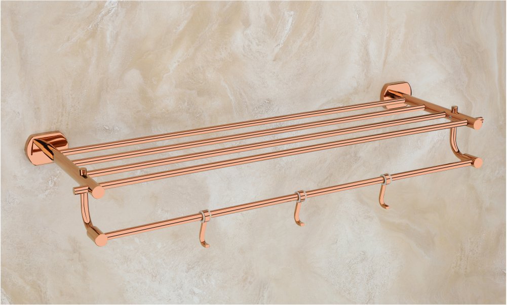 Transform your bathroom with our sophisticated 24-inch towel rack, crafted with a stunning PVD rose gold finish to add a touch of elegance and functionality.