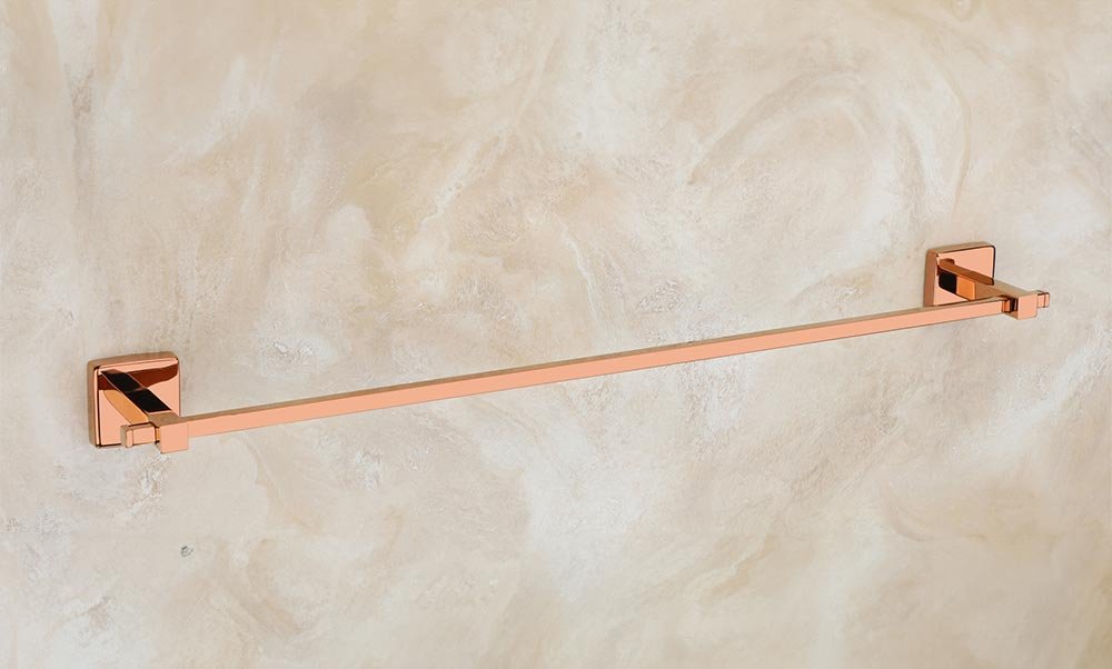 Elevate your bathroom with the Vencia 24″ Towel Rod featuring a Soap Dish, exquisitely finished in rose gold. Perfect for organizing towels with elegance and enhancing your bathroom decor effortlessly.